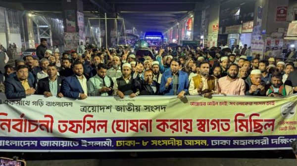 ত্রয়োদশ জাতীয় সংসদ নির্বাচনের তফসিলকে স্বাগত জানিয়ে রাজধানীতে আনন্দ মিছিল করেছে বাংলাদেশ বিস্তারিত