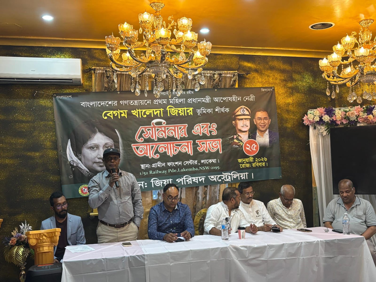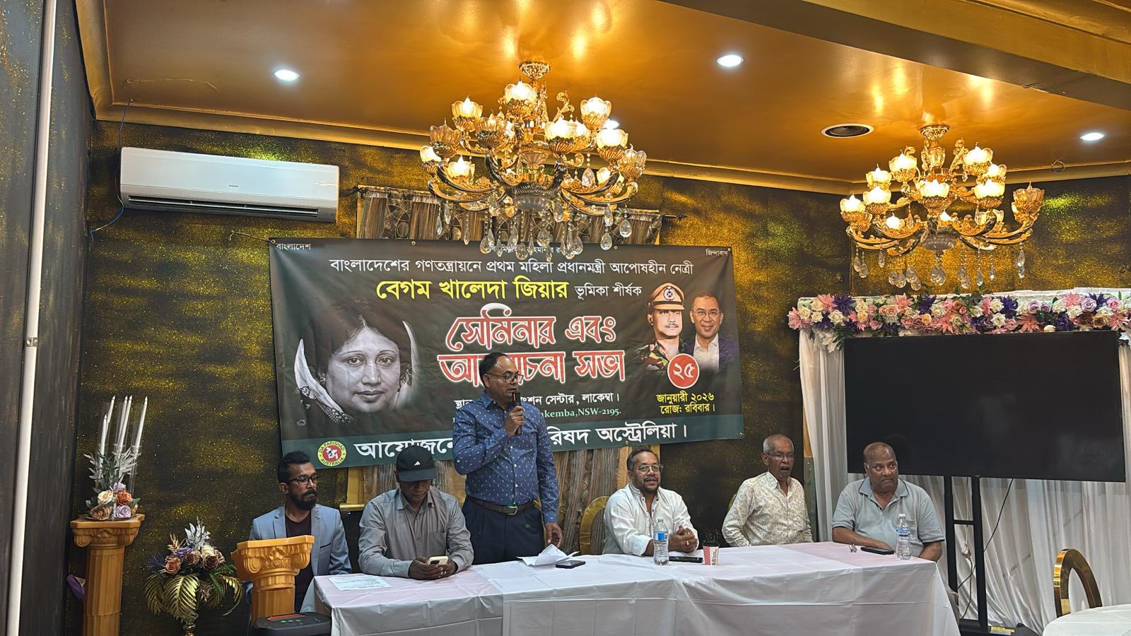 জিয়া পরিষদ অস্ট্রেলিয়ার উদোগে বাংলাদেশের গণতন্ত্রায়নে সাবেক প্রধানমন্ত্রী বেগম খালেদা জিয়ার ভূমিকা শীর্ষক এক আলোচনা সভা এবং সেমিনার।